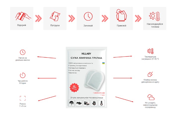 - Відкривати упаковку задовго до використання – грілка просто втратить здатність нагріватися.